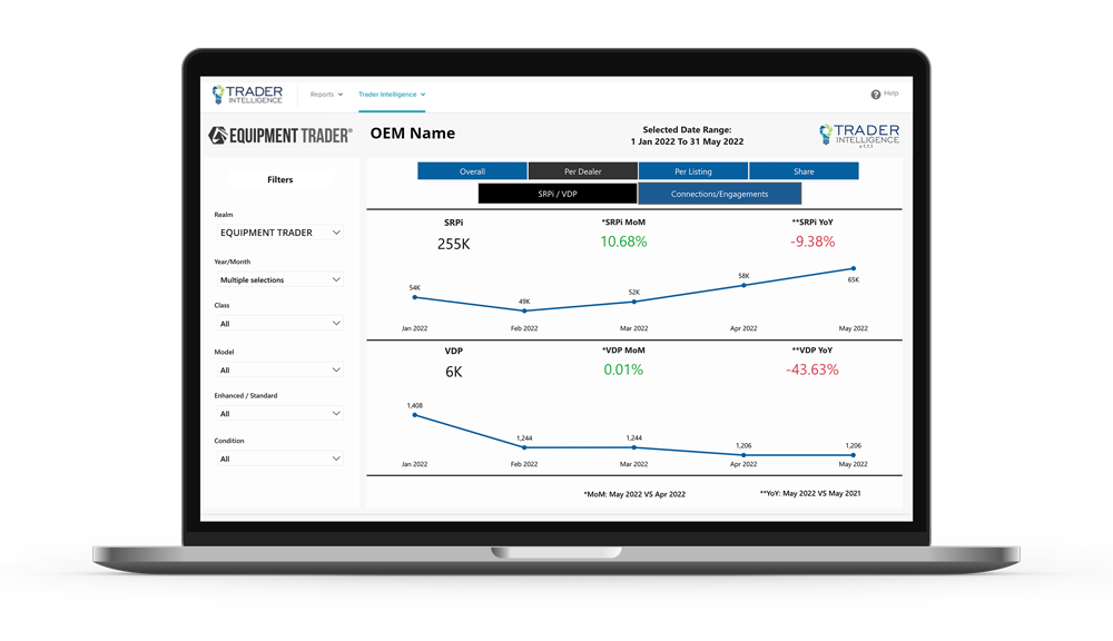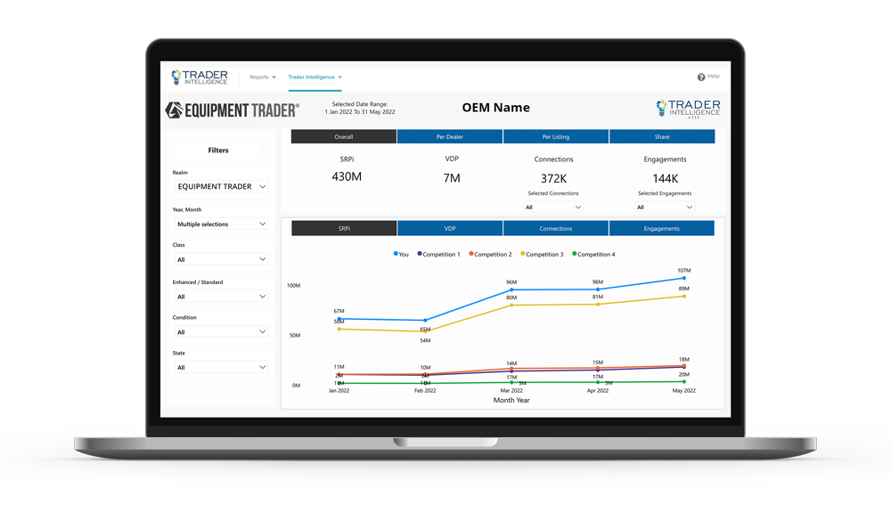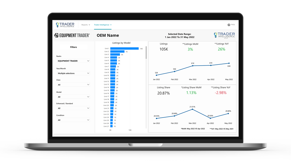 The Trader Intelligence section of TraderTraxx is home to all of the tools available to you as an OEM. Leveraging these tools will enable you to make better business decisions, and will empower you to develop targeted, competitive strategies to maintain or grow market share.